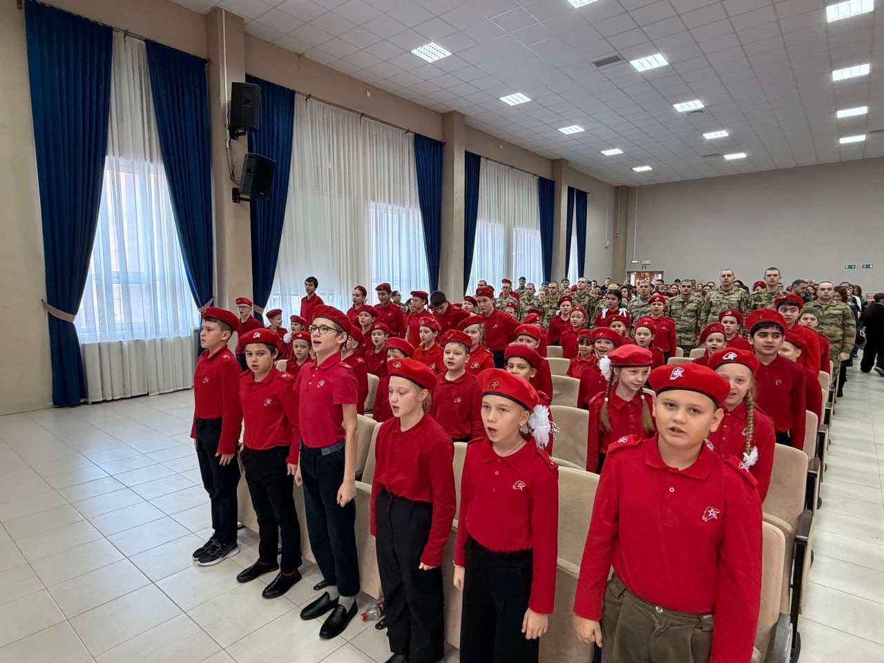 В праздничном мероприятии приняли участие ученик, учителя, родители и гости нашей школы. Юнармейский отряд «Доблесть, честь и отвага им. Героя России Гавриленко В.С.» пополнился на 200 мальчишек и девчонок. Ребята дали клятву юнармейца и вступили в ряды военно-патриотического движения.