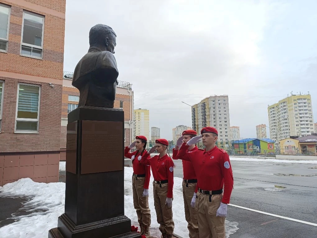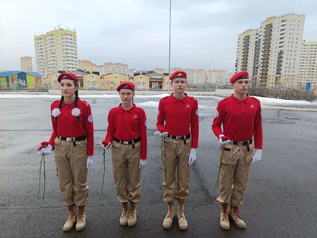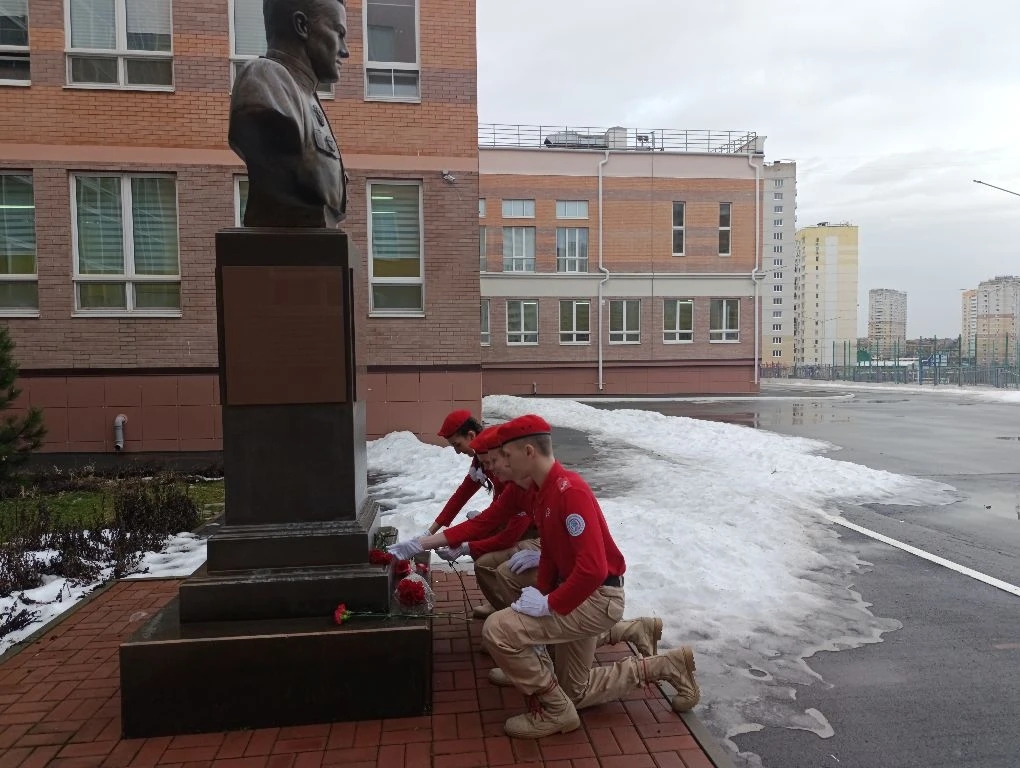 В этот памятный день лучшие юнармейцы школы почтили память защитников Отечества. В знак глубокого уважения и вечной благодарности ребята возложили цветы к памятнику Ивану Никитичу.