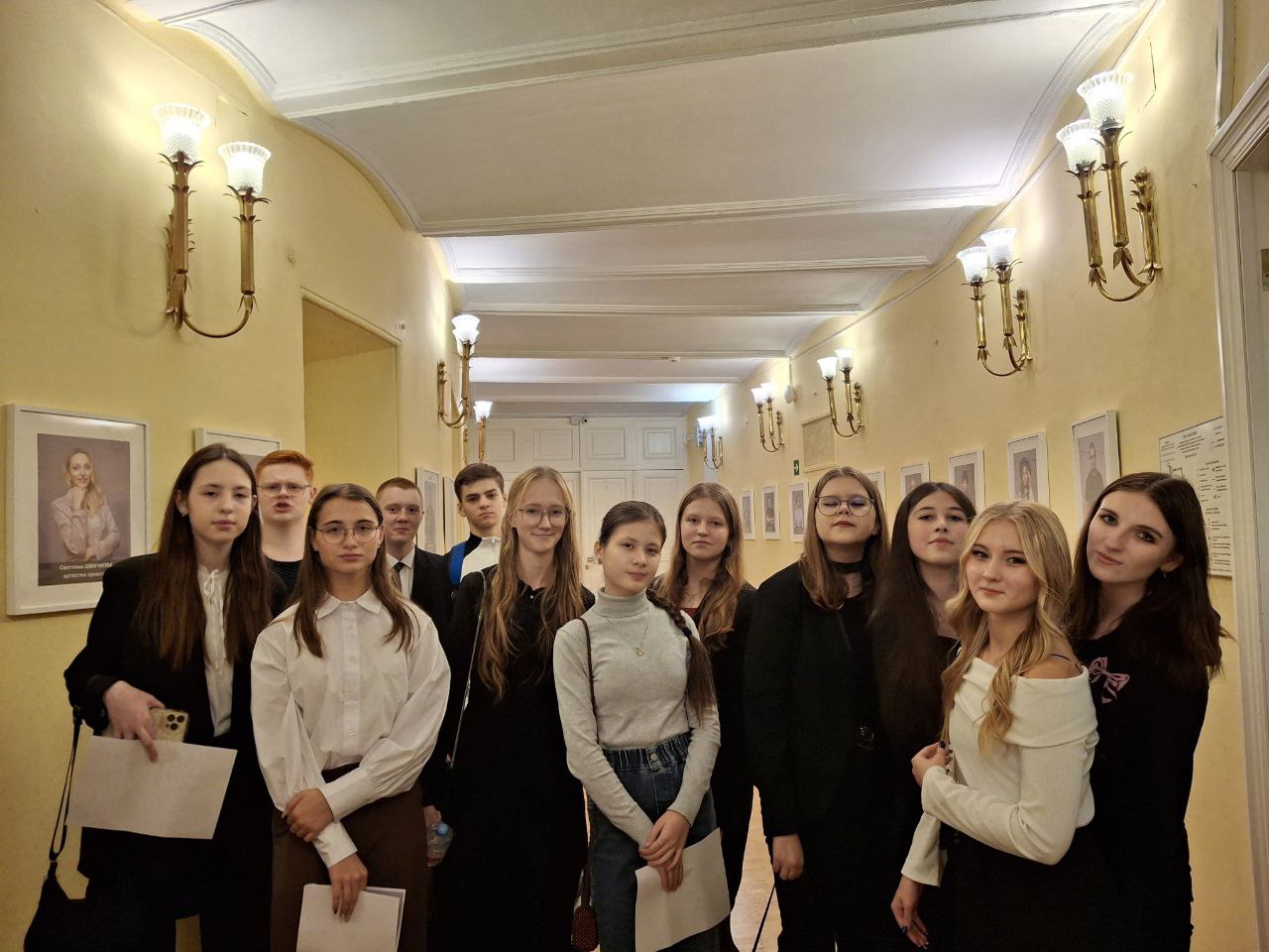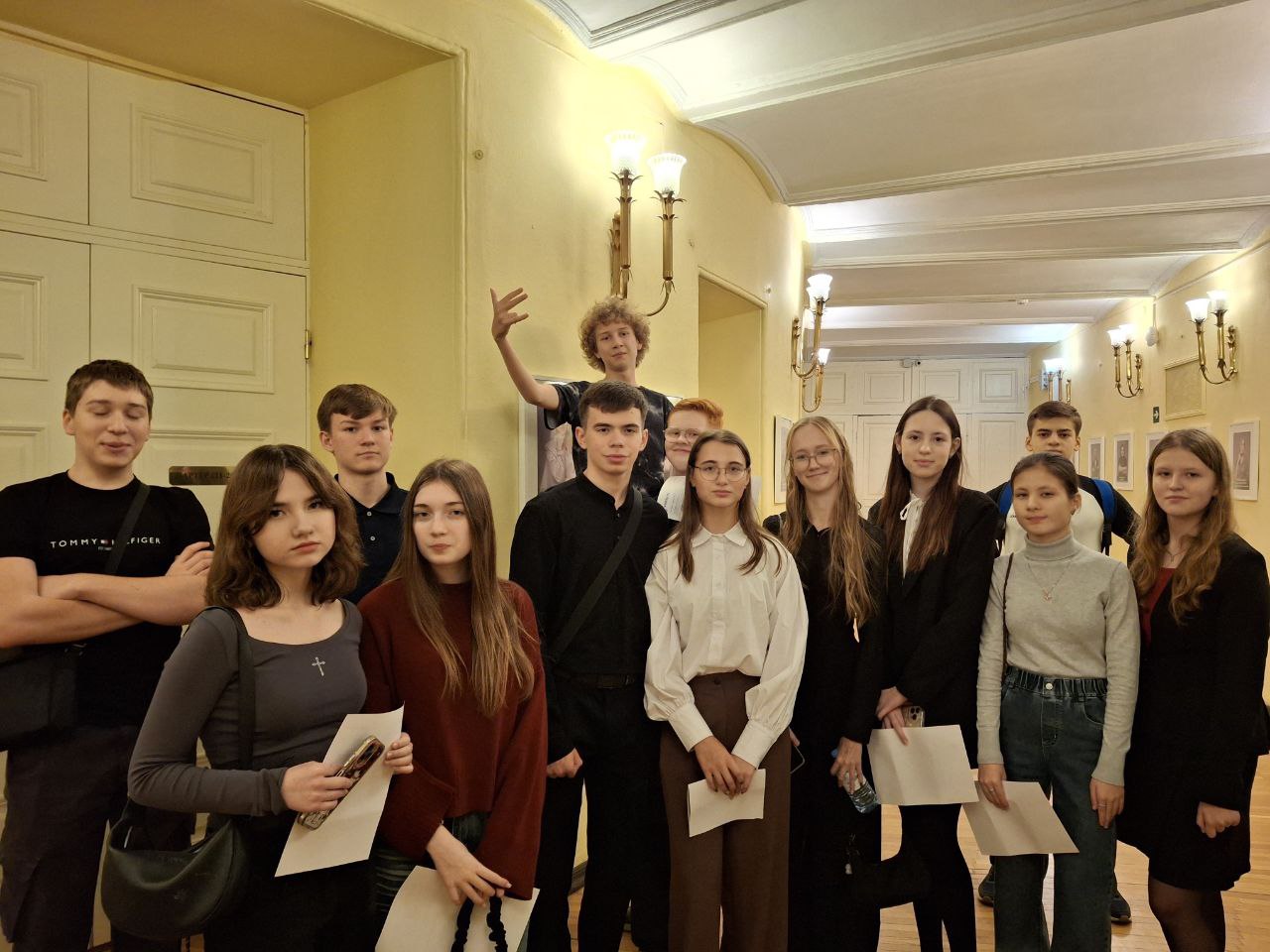 9 “Д” класс после изучения комедии “Горе от ума” в школе отправился в театр, чтобы увидеть современную режиссерскую интерпретацию классического произведения. Посещение спектакля стало отличным способом глубже понять смысл пьесы, осмыслить актуальные конфликты и темы, поднимаемые Грибоедовым, оценить вневременное значение комедии, а также прекрасно провести совместно вечер.