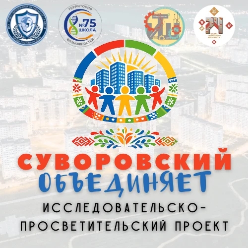 Образовательное пространство микрорайона запускает проект “Суворовский объединяет: единство Отечества в гармонии многообразия”. Наш проект нацелен показать, как много разных национальностей проживает в нашем микрорайоне.