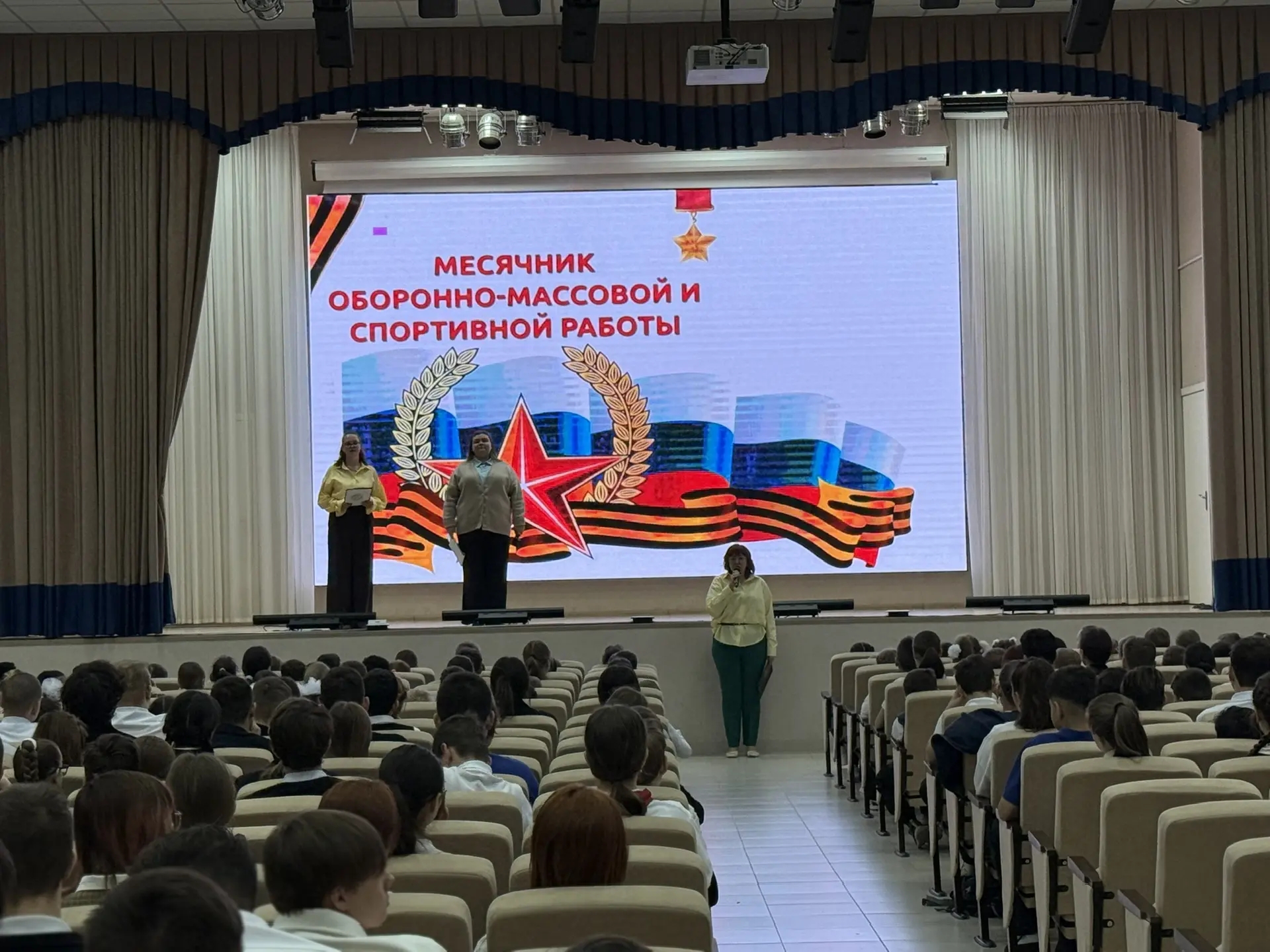📌 Сегодня, 2 февраля, на нашей традиционной еженедельной линейке вместе с советниками директора по воспитанию состоялось яркое событие — официальное открытие военно-патриотического месячника!