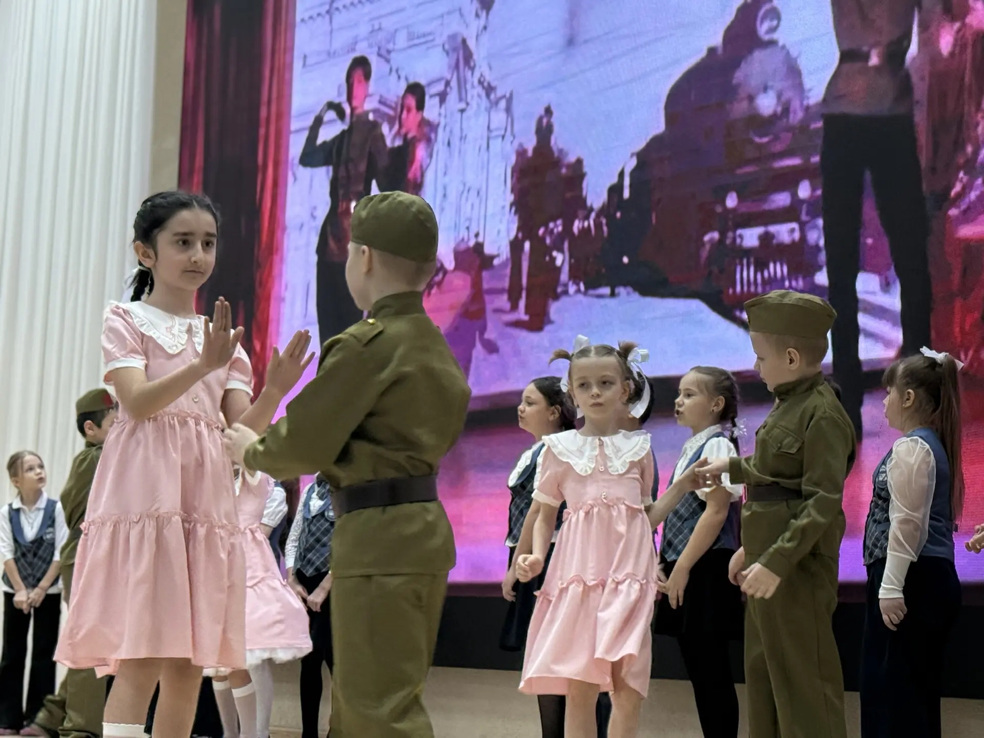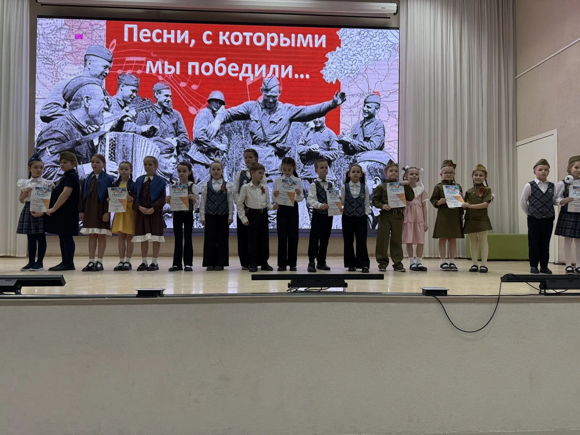 🎶 Маленькие патриоты соревновались друг с другом, исполняя любимые песни военных лет. Участники подготовили отличные номера, продемонстрировав гордость за свою страну и глубокую связь поколений.