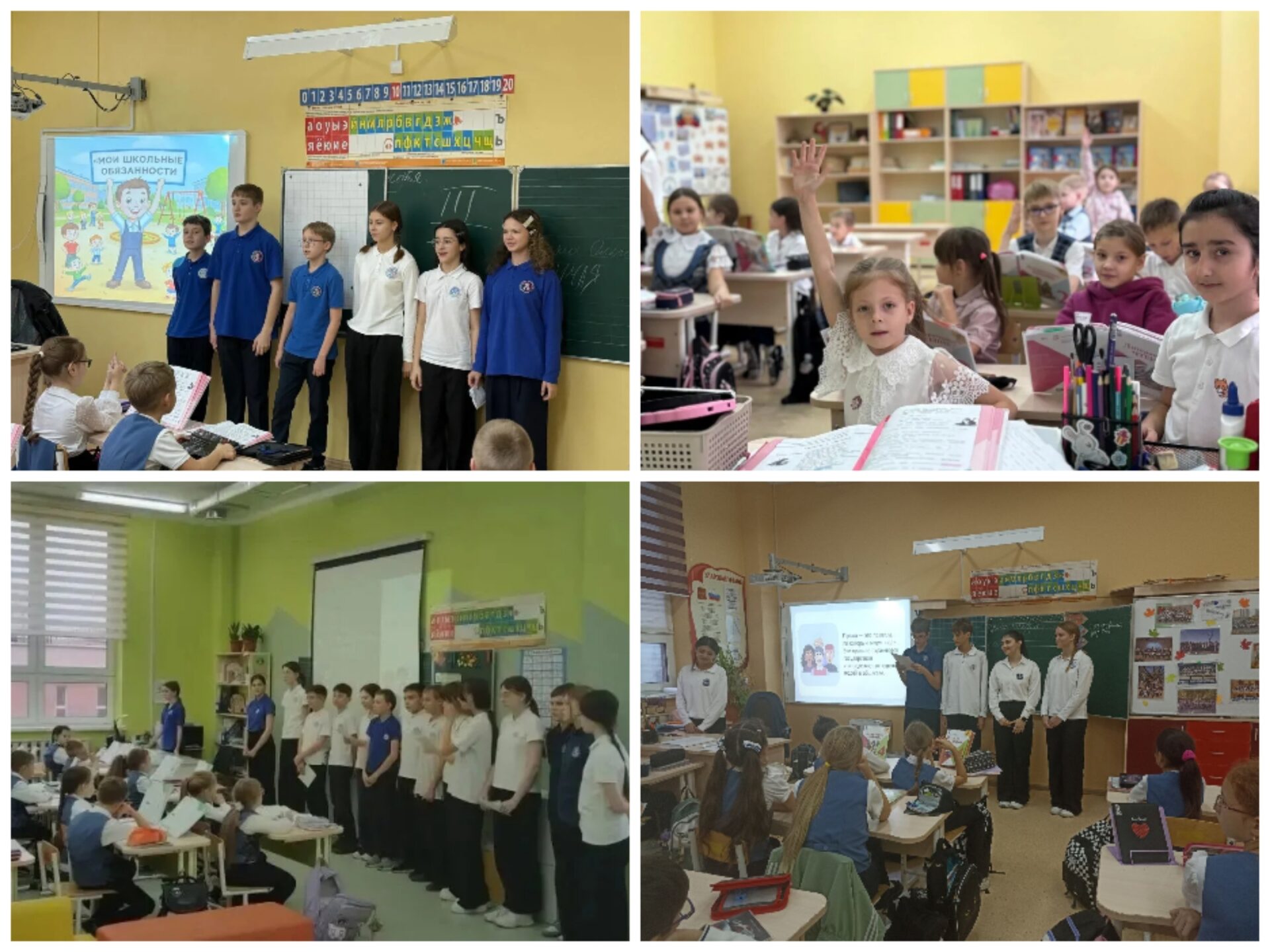 В рамках мероприятия «Равный-равному», учащиеся старших классов посетили начальную школу, чтобы провести уникальные и увлекательные мероприятия на тему “Знай свои обязанности”. 🌟
