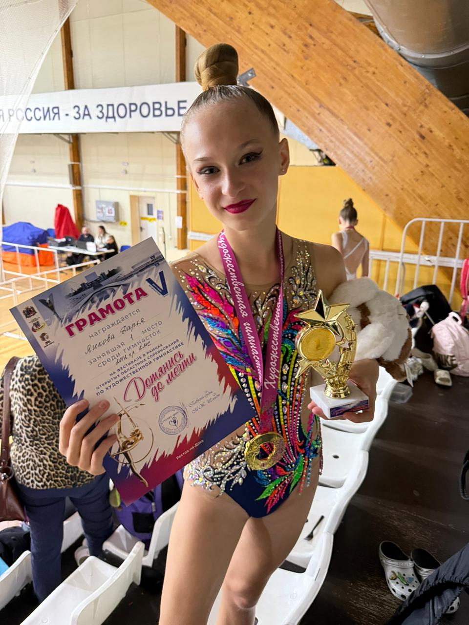 Ученица 7 “Б” класса Яикова Дарья заняла почётное 1-е место в областных соревнованиях по художественной гимнастике
