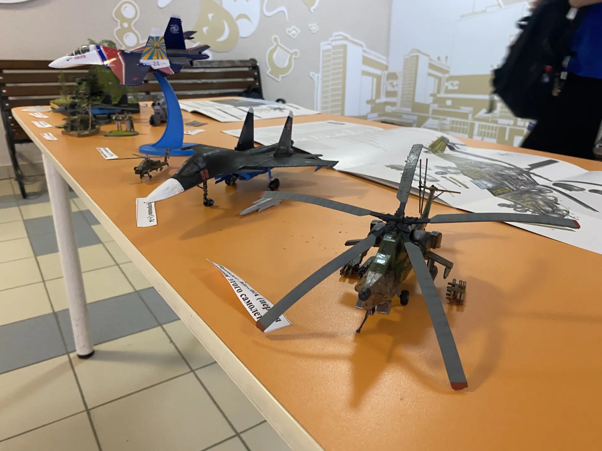 На переменах ребята смогли познакомиться с экспозицией, узнать много нового о различных самолётах и вертолётах, а также о том, как создаются такие модели — от первых этапов сборки до финальной проработки деталей.
