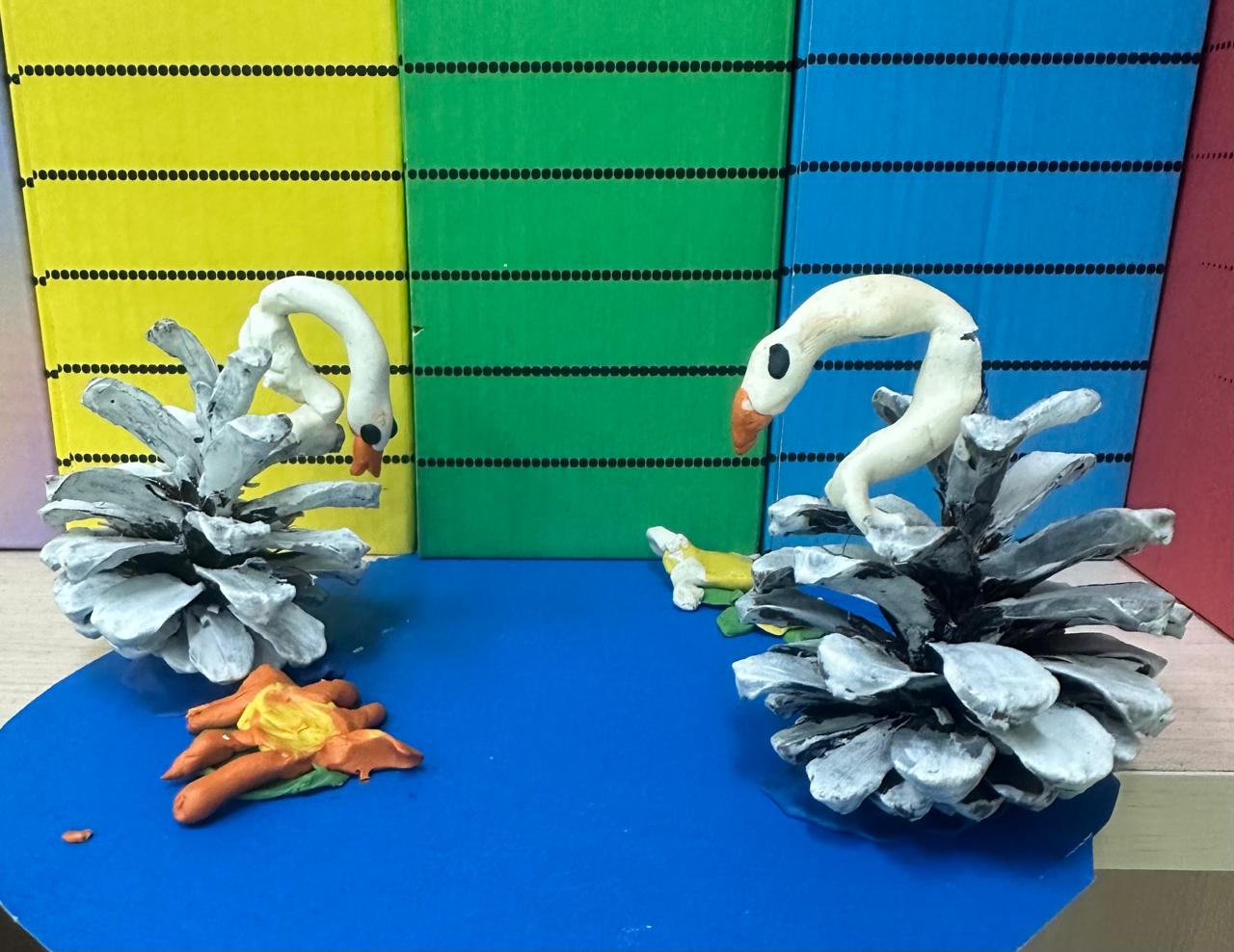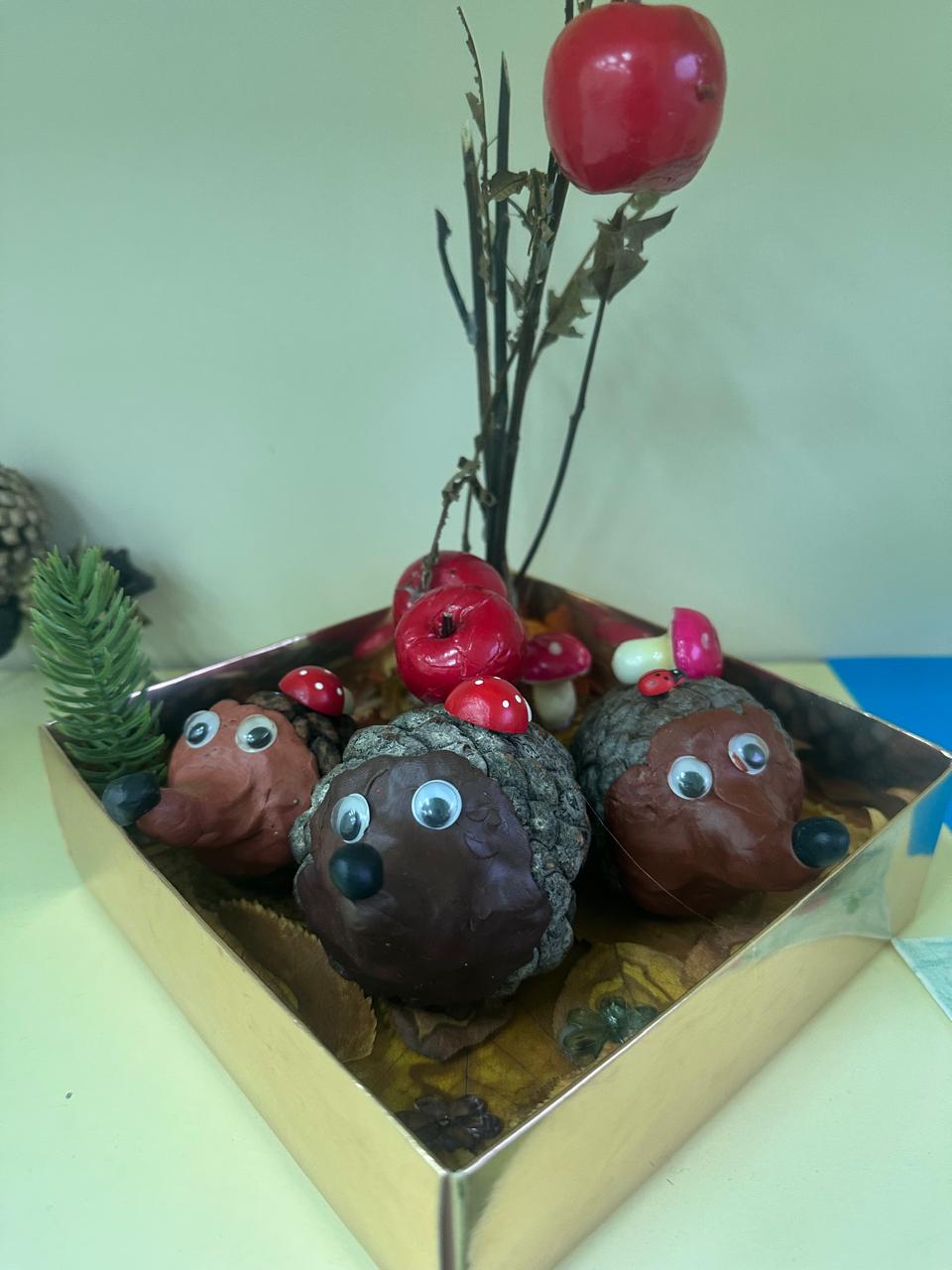 Ученики 1 «Д» класса (кл. рук. Верещагина Н.В.) с пользой провели осенние каникулы. Вместе с родителями, старшими братьями и сестрами они окунулись в увлекательный мир поделок из природного материала. На уроке окружающего мира ребята изучили хвойные растения и решили смастерить из шишек интересных зверят. На выставке в классе можно увидеть и веселых ежей🦔, и грациозных лебедей🦢, и рыбу🐡, и даже динозавра🦖.