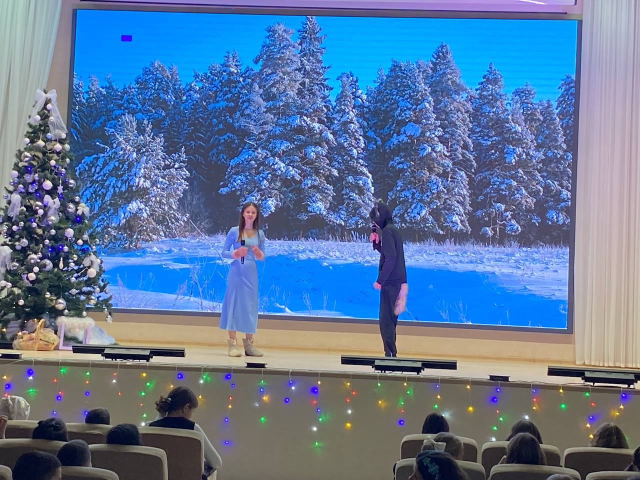 Ученики 10 «Г» класса создали праздничную атмосферу, доставили детям радость, волшебство и приключение, показали постановку сказки «Морозко»🌬️.