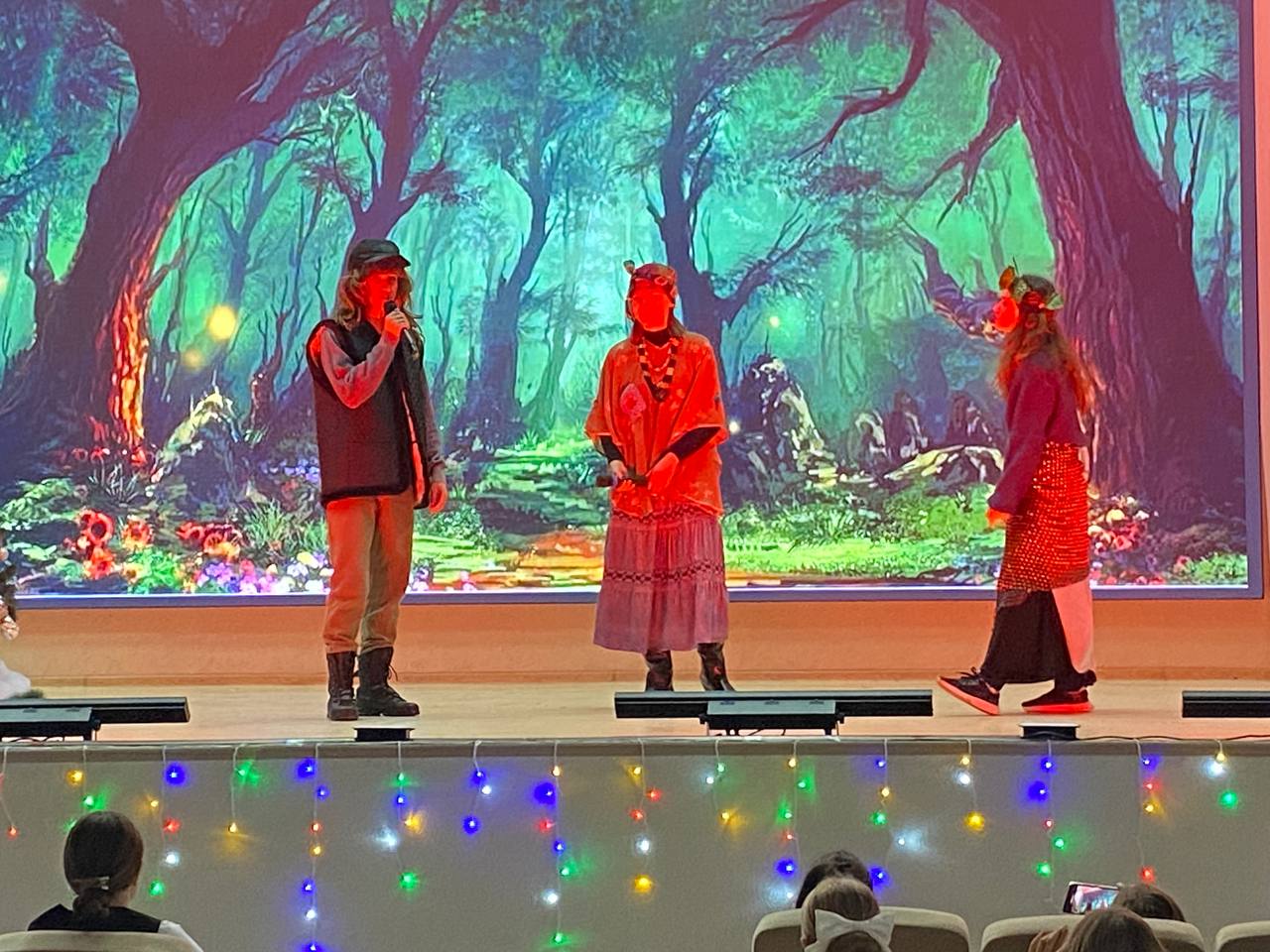 Баба–Яга, Марфуша, Настенька, мачеха, зайчик, лиса, разбойники, Кикимора, Леший, Дед Мороз и Снегурочка вместе с учениками 4-х классов путешествовали по сказочному лесу! Путешествие получилось волшебным, где добро побеждает зло. ❄️ Праздник удался на славу! 🌟