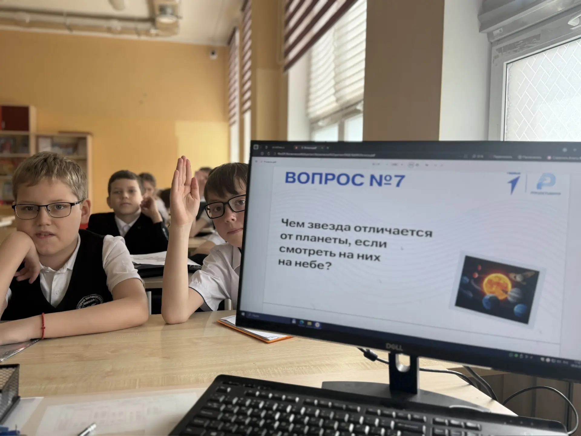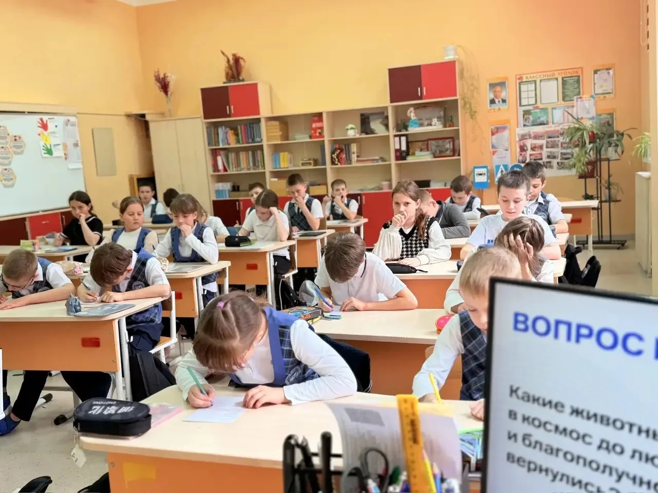 📝 Ученики с увлечением проверили свои знания, отвечая на вопросы о великих открытиях, легендарных космонавтах и тайнах Вселенной. Это был не просто диктант, а настоящее интеллектуальное путешествие к звездам!