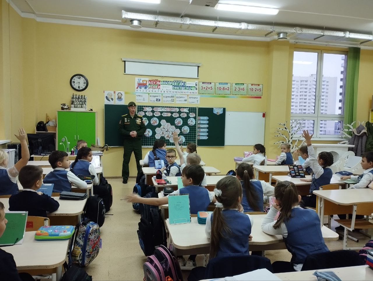 В преддверии празднования Дня Героя Отечества 🎖️ в рамках внеурочной деятельности “Разговоры о важном” во 2 “Р” классе состоялась встреча с гвардии старшиной Корнеевым В.В. Вячеслав Викторович рассказал ребятам о своей службе на Кавказе, об участии в спасательной операции заложников в Цхинвале, об организации “Миротворец”, членом которой является в настоящее время. Поведал учащимся о подвигах Великих полководцев, об их любви и преданности Родине. Также Вячеслав Викторович напомнил ребятам о мошенничестве в мессенджерах, об опасности общения с незнакомцами и необходимости доверительных отношений с родителями.