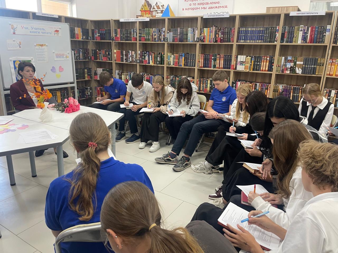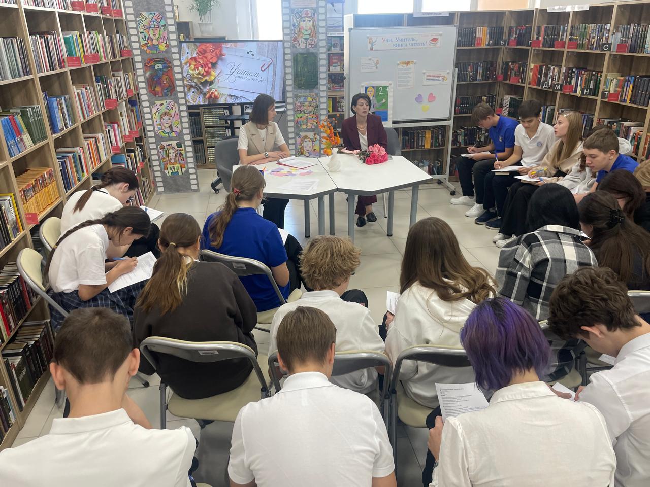 В рамках проекта “Ориентир” в БИЦ семейного чтения имени Л.Н. Толстого учащиеся 9 “Д” класса МБОУ “Школа N 75” приняли участие в часе общения “Воспитатель – это великое дело”.