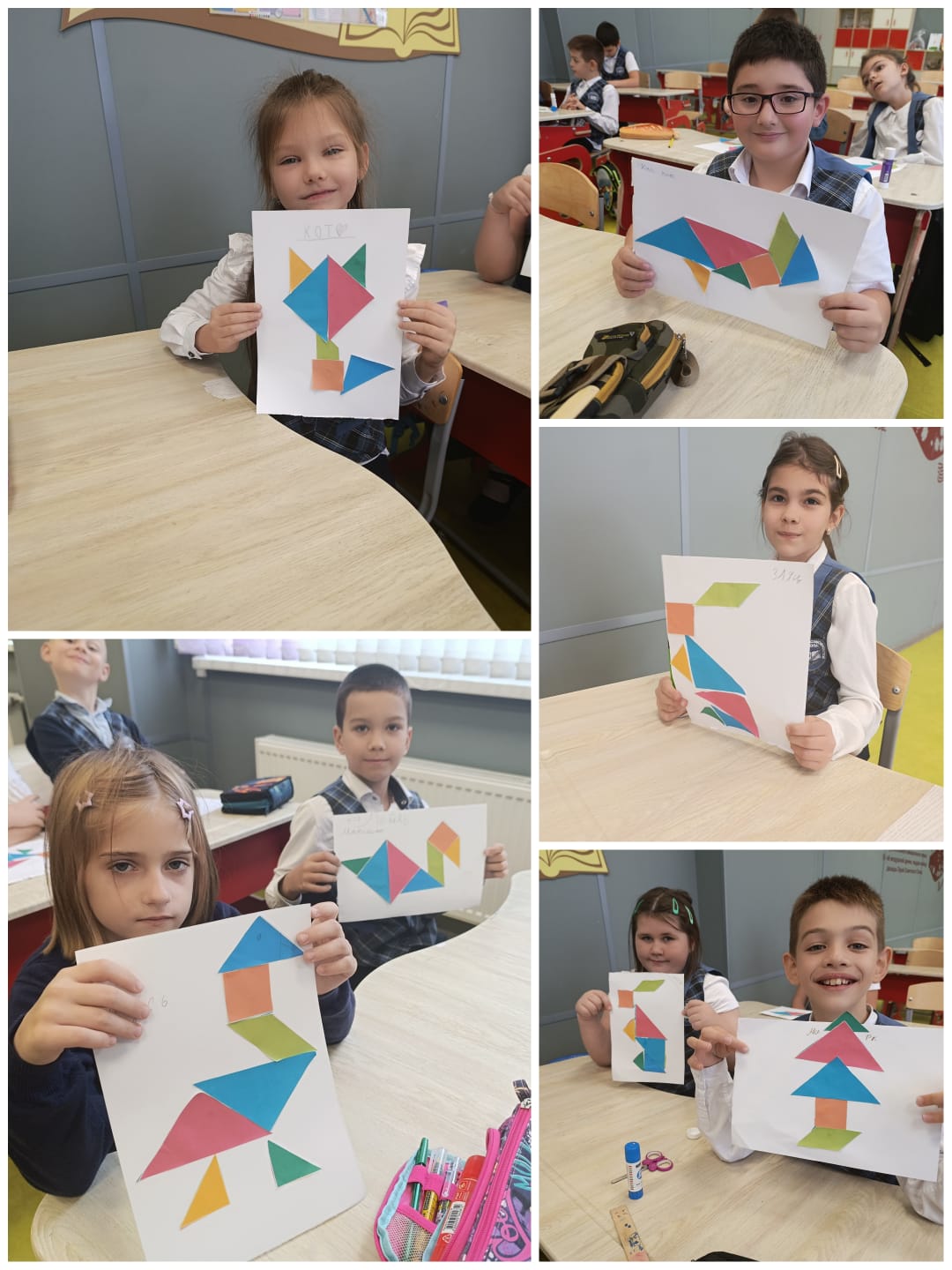 🦅 Особый интерес вызвала игра танграм, где ребята, используя геометрические фигуры, создавали разнообразных животных.