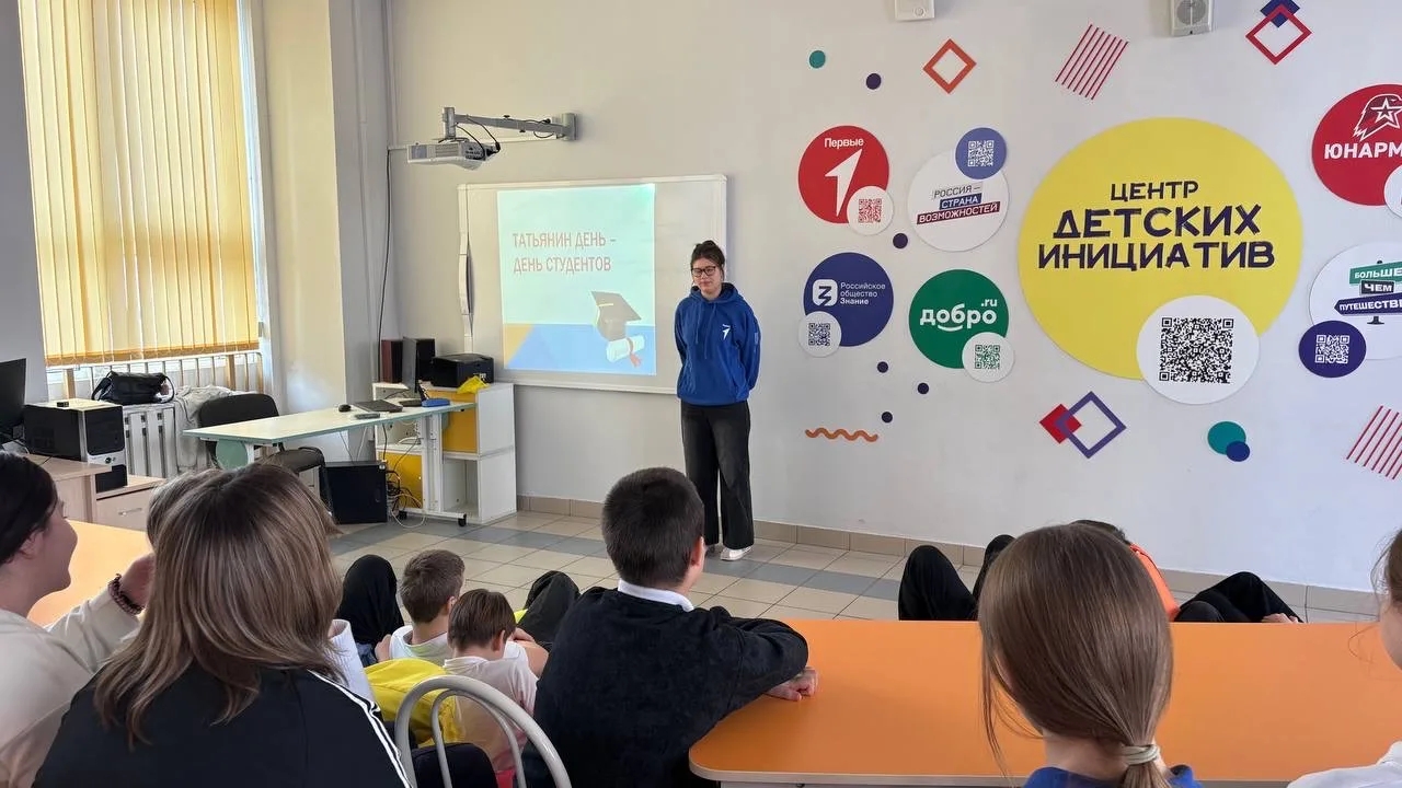 В рамках Всероссийской акции «День студента» активистами нашего первичного отделения «Движение Первых» в центре детских инициатив была проведена встреча с учащимися нашей школы, в рамках которой ребята узнали историю возникновения праздника, об особенностях специальностей, сессиях, об отличиях студенческой жизни от школьной, главных навыках для учёбы и типичных трудностях первокурсника.