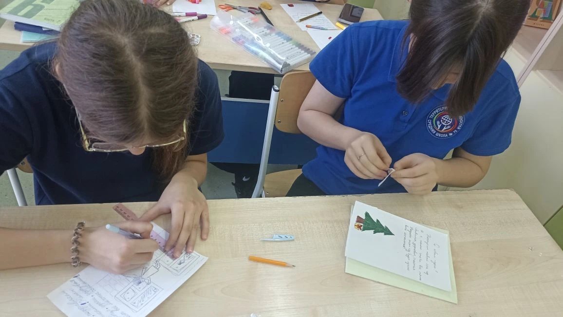 Ученики 6 “Д” класса изготовили поздравительные открытки для ветеранов и людей пожилого возраста, чтобы создать им праздничное настроение 🎄🎉.